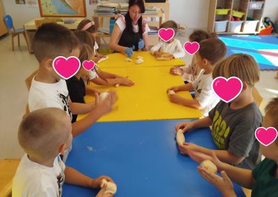 Kroz aktivnosti miješenja i oblikovanja tijesta poticali smo kod djece razvoj kreativnosti, fine motorike i zajedništva.